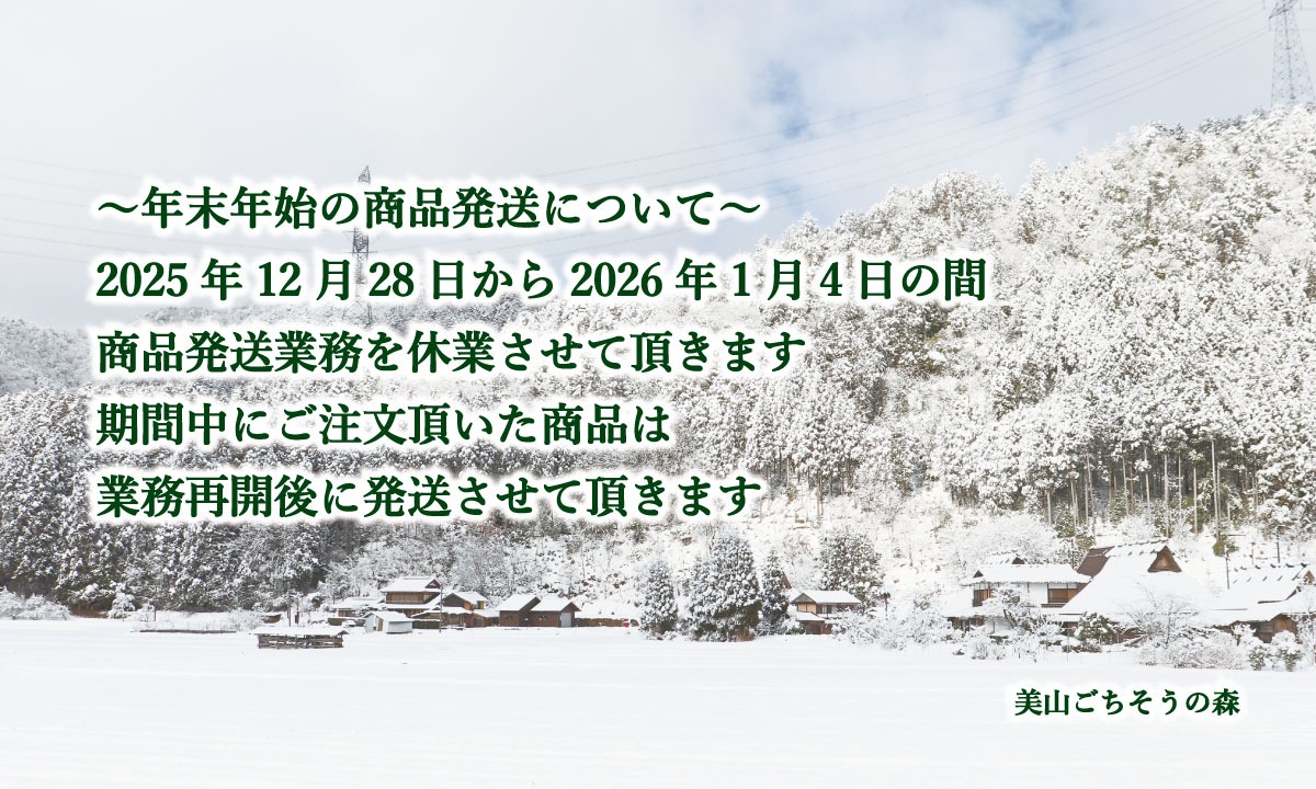 美山ごちそうの森をご利用頂きまして、誠にありがとうございます。当ショップでは2025年12月28日〜2026年1月4日の期間中